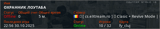 Играет на Counter Strike 1.6 сервере. Страна: РумынияПервый раз замечен 22:54 30.10.2025