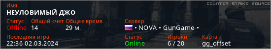 Играет на Counter Strike Source сервере. Страна: РоссияПервый раз замечен 05:02 29.09.2023