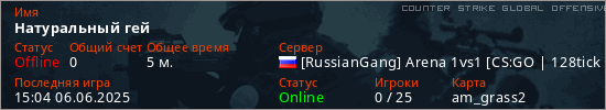 Играет на Counter Strike Global Offensive сервере. Страна: РоссияПервый раз замечен 14:57 06.06.2025