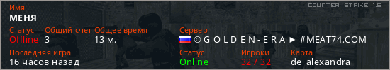 Последний раз был в сети 14 часов назад Игрок с таким ником замечен на 7 серверах
