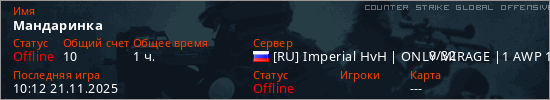 Играет на Counter Strike Global Offensive сервере. Страна: РоссияПервый раз замечен 08:44 11.08.2025
