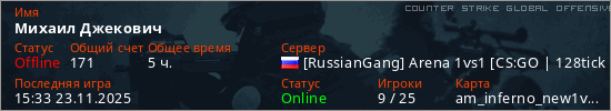 Играет на Counter Strike Global Offensive сервере. Страна: РоссияПервый раз замечен 00:31 29.06.2024