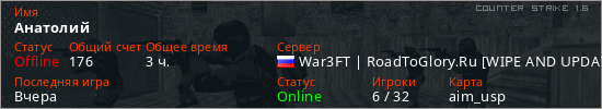Последний раз был в сети Вчера Игрок с таким ником замечен на 29 серверах