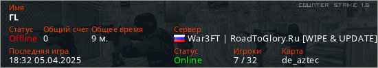 Играет на Counter Strike 1.6 сервере. Страна: РоссияПервый раз замечен 18:07 05.04.2025