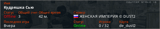 Последний раз был в сети Вчера Игрок с таким ником замечен на 3 серверах