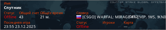 Играет на Counter Strike Global Offensive сервере. Страна: РоссияПервый раз замечен 22:05 15.12.2025
