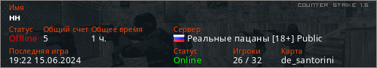 Последний раз был в сети 19:22 15.06.2024 Игрок с таким ником замечен на 17 серверах