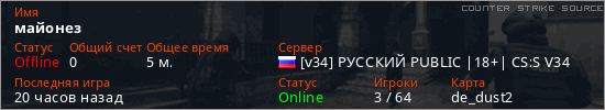 Последний раз был в сети 19 часов назад Игрок с таким ником замечен на 20 серверах