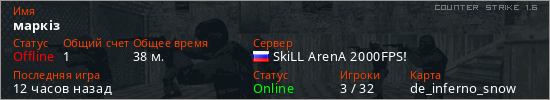 Играет на Counter Strike 1.6 сервере. Страна: РоссияПервый раз замечен 21:34 10.12.2025