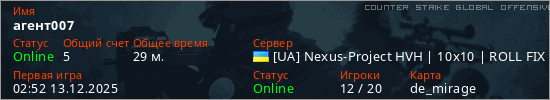 Играет на Counter Strike Global Offensive сервере. Страна: УкраинаПервый раз замечен 02:52 13.12.2025