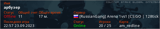 Играет на Counter Strike Global Offensive сервере. Страна: РоссияПервый раз замечен 01:49 25.08.2023