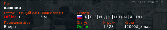 Последний раз был в сети Вчера Игрок с таким ником замечен на 6 серверах