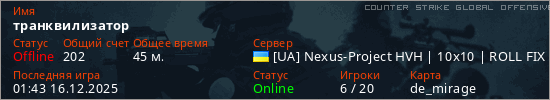 Играет на Counter Strike Global Offensive сервере. Страна: УкраинаПервый раз замечен 19:40 15.12.2025