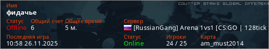Играет на Counter Strike Global Offensive сервере. Страна: РоссияПервый раз замечен 10:50 26.11.2025