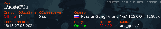Играет на Counter Strike Global Offensive сервере. Страна: РоссияПервый раз замечен 18:11 07.05.2024
