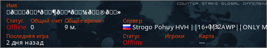 Играет на Counter Strike Global Offensive сервере. Страна: РоссияПервый раз замечен 00:11 31.01.2026