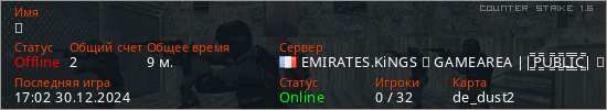 Играет на Counter Strike 1.6 сервере. Страна: ФранцияПервый раз замечен 17:40 22.12.2024