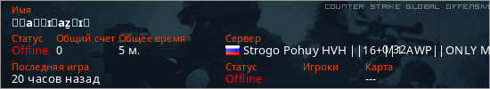 Играет на Counter Strike Global Offensive сервере. Страна: РоссияПервый раз замечен 19:57 30.01.2026