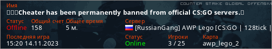 Cheater has been permanently banned from official CS:GO servers.