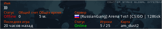 Играет на Counter Strike Global Offensive сервере. Страна: РоссияПервый раз замечен 10:52 27.02.2026