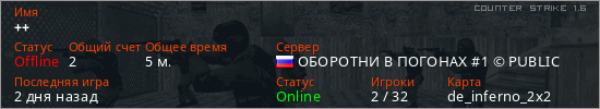 Последний раз был в сети 2 дня назад Игрок с таким ником замечен на 22 серверах