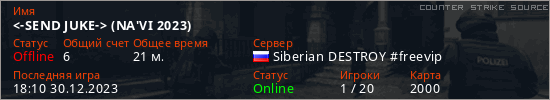 Играет на Counter Strike Source сервере. Страна: РоссияПервый раз замечен 11:54 09.12.2023