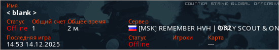 Играет на Counter Strike Global Offensive сервере. Страна: РоссияПервый раз замечен 14:53 14.12.2025