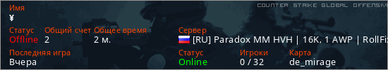 Играет на Counter Strike Global Offensive сервере. Страна: РоссияПервый раз замечен 21:26 01.02.2026