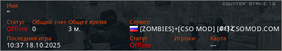 Играет на Counter Strike 1.6 сервере. Страна: РоссияПервый раз замечен 10:37 18.10.2025