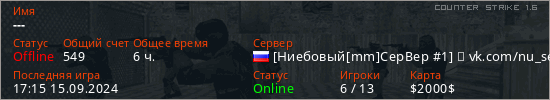 Последний раз был в сети 17:15 15.09.2024 Игрок с таким ником замечен на 45 серверах