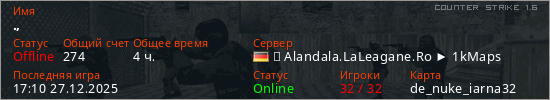 Играет на Counter Strike 1.6 сервере. Страна: ГерманияПервый раз замечен 20:48 22.04.2025