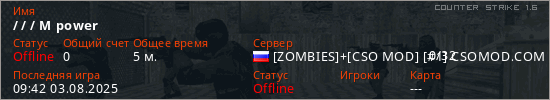 Общая информация игрока