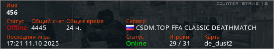 Последний раз был в сети 17:21 11.10.2025 Игрок с таким ником замечен на 52 серверах