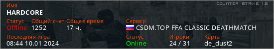 Играет на Counter Strike 1.6 сервере. Страна: РоссияПервый раз замечен 20:53 25.02.2020