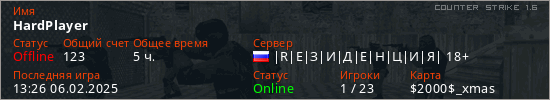 Последний раз был в сети 13:26 06.02.2025 Игрок с таким ником замечен на 28 серверах
