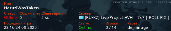 Играет на Counter Strike Global Offensive сервере. Страна: КазахстанПервый раз замечен 22:58 24.08.2025