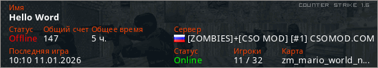 Общая информация игрока