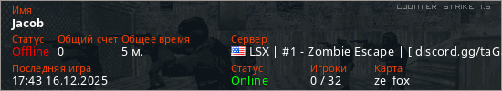 Играет на Counter Strike 1.6 сервере. Страна: СШАПервый раз замечен 17:38 16.12.2025