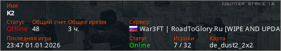 Последний раз был в сети 23:47 01.01.2026 Игрок с таким ником замечен на 40 серверах
