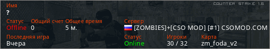 Последний раз был в сети Вчера Игрок с таким ником замечен на 76 серверах