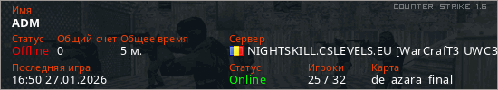 Играет на Counter Strike 1.6 сервере. Страна: РумынияПервый раз замечен 16:48 27.01.2026