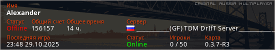 Играет на Criminal Russia Multiplayer сервере. Страна: РоссияПервый раз замечен 16:27 28.06.2025