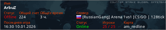 Играет на Counter Strike Global Offensive сервере. Страна: РоссияПервый раз замечен 21:03 22.09.2025