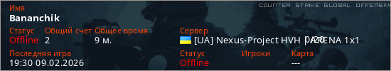 Играет на Counter Strike Global Offensive сервере. Страна: УкраинаПервый раз замечен 19:09 09.02.2026