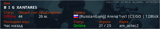 Играет на Counter Strike Global Offensive сервере. Страна: РоссияПервый раз замечен 18:23 30.01.2026