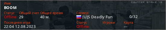 Играет на Counter Strike 1.6 сервере. Страна: РоссияПервый раз замечен 11:27 12.02.2022