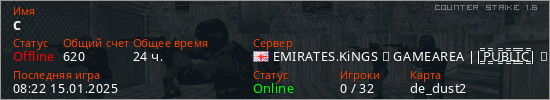 Последний раз был в сети 08:22 15.01.2025 Игрок с таким ником замечен на 34 серверах