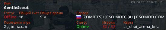 Играет на Counter Strike 1.6 сервере. Страна: РоссияПервый раз замечен 04:51 24.01.2026