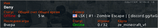 Играет на Counter Strike 1.6 сервере. Страна: СШАПервый раз замечен 22:11 22.01.2026