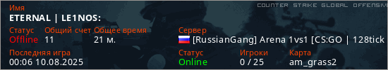 Играет на Counter Strike Global Offensive сервере. Страна: РоссияПервый раз замечен 21:10 07.08.2025